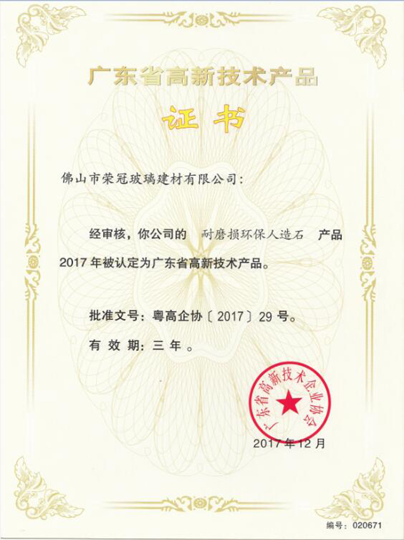 5月公司名稱由“廣東三水市榮冠玻璃馬賽克有限公司” 正式更名為“佛山市榮冠玻璃建材有限公司” ; 11月 微晶石分廠第二條隧道窯生產線正式投產; (2011年1月微晶石分廠因公司發展規劃,正式停止生產。) 12月公司首次通過了ISO9001:2000國際質量管理體系認證;