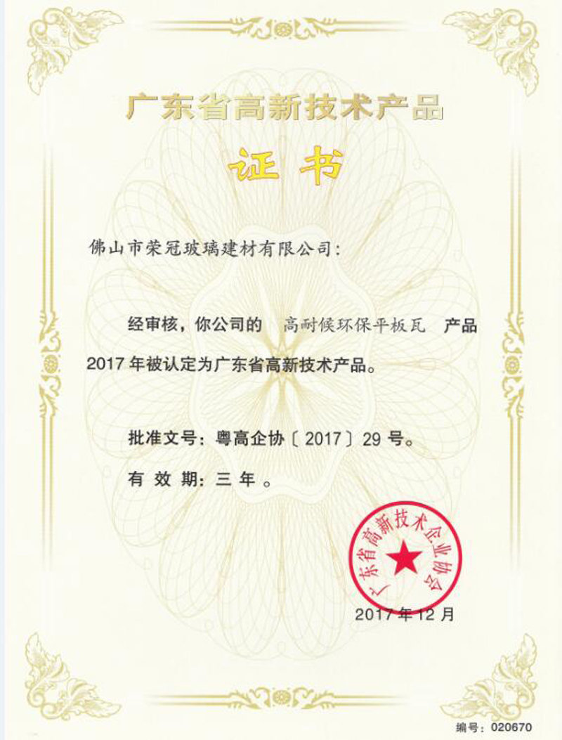 獲得“廣東省守合同重信用企業”稱號;獲得“佛山市隱形冠軍培育企業”榮譽稱號;