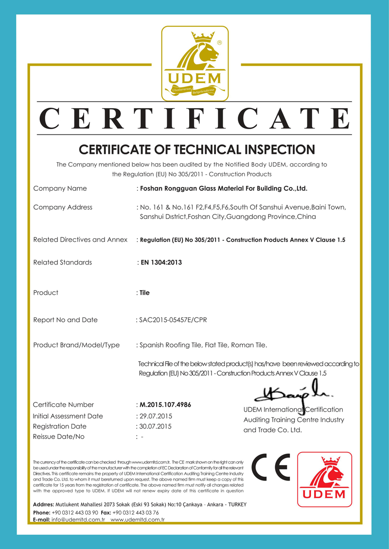 榮冠平板瓦和榮冠羅曼瓦的出品,填補了國內高端項目依賴于進口瓦的一項空白?!皹s冠”牌陶瓦具備隔熱好、耐久性、色彩鮮艷等諸多功能和特色,造型起伏多變,富有古典的歐式風味,鋪蓋后自然高雅,格調獨特,其從普通的瓦類的遮風擋雨的功能轉變為主要以裝飾功能為主,裝飾效果古樸自然、經典懷舊、風韻雅致。它是各種中高檔酒店別墅、樓宇亭臺、大型商業中心、市政工程等建筑的首選屋面裝飾材料。
