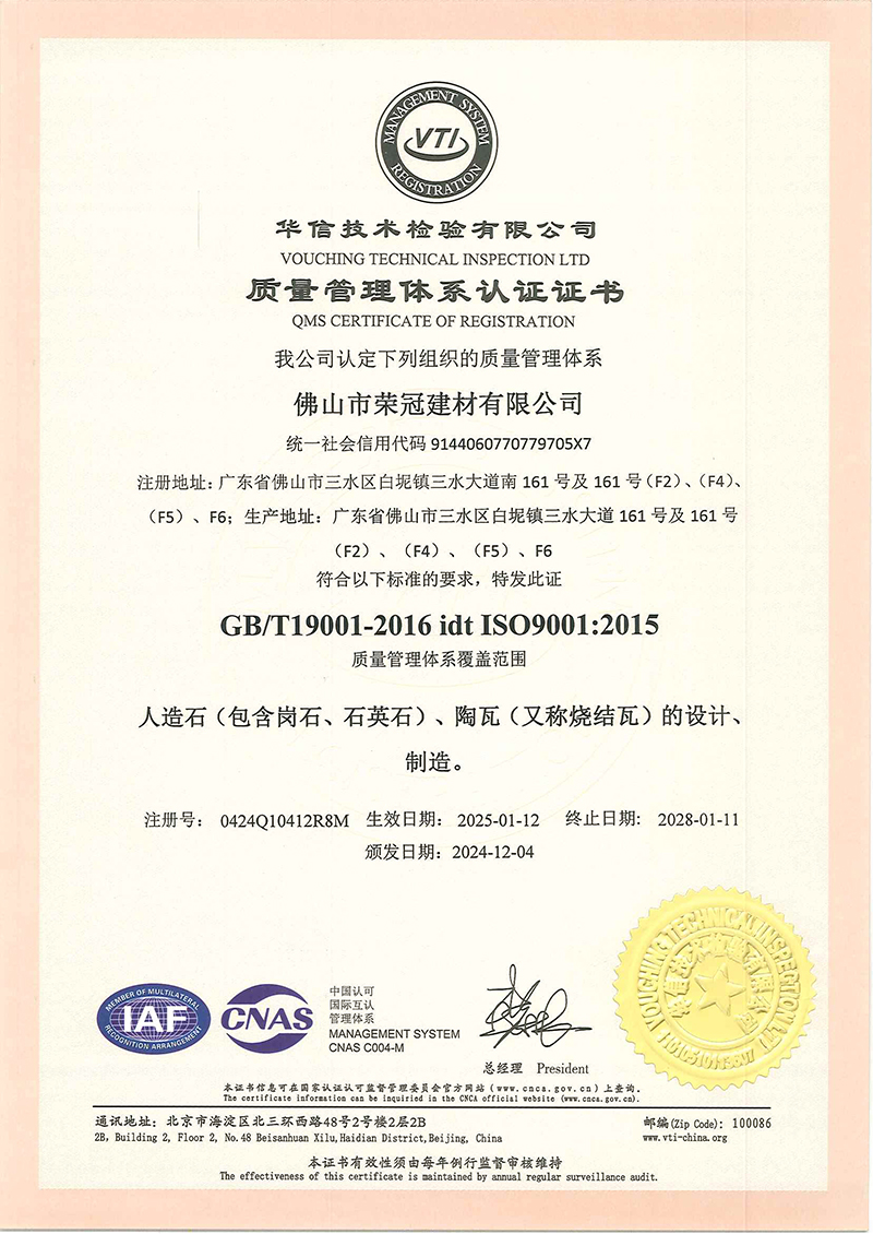 佛山市榮冠建材有限公司秉承高度的社會責任感,以滿足顧客要求為根本,不斷追求技術創新、堅守一流品質。以滿足顧客需要為榮,以市場信譽為冠,塑造榮冠品牌。