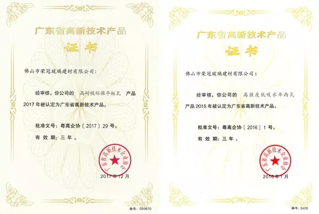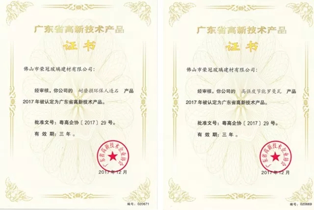 為了追求更加全面的智能化發(fā)展,榮冠也在不斷升級著自身的制造設備,響應著國家的智能制造,踐行著更加科學,智能化的進程,品質(zhì)的追求是榮冠不變的初心。正是懷著這種初心,讓榮冠的產(chǎn)品走進了更加廣闊的空間,“耐磨損環(huán)保人造石”、“高強度節(jié)能羅曼瓦”,“高耐候環(huán)保平板瓦”、“高強度低吸水西瓦” 等多種產(chǎn)品獲得了廣東省高新技術產(chǎn)品證書。