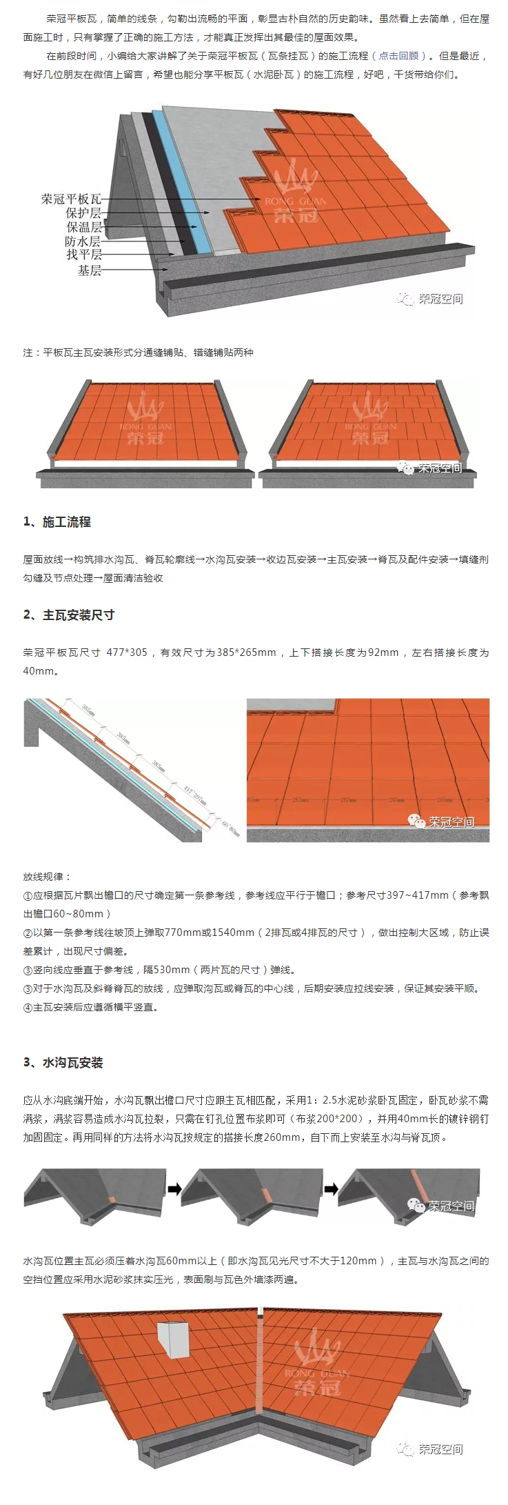 干貨 | 榮冠平板瓦(水泥臥瓦)施工方案分享給您