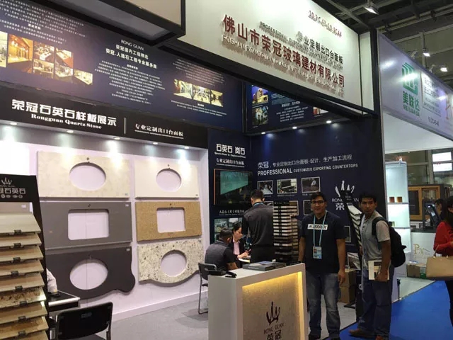 作為人造石工程專業(yè)服務(wù)商,榮冠石材擁有十多年積累的豐富生產(chǎn)加工經(jīng)驗(yàn),并使用國外引進(jìn)的先進(jìn)生產(chǎn)設(shè)備,確保產(chǎn)品性能穩(wěn)定,工藝品質(zhì)卓越。在本屆廣交會(huì)中,榮冠石材展示出臺(tái)面板的設(shè)計(jì)加工各個(gè)流程,并通過臺(tái)面板異型切割開孔組合等精細(xì)工藝展示,體現(xiàn)出榮冠在精加工方面的雄厚實(shí)力,獲得了觀展客商的一致好評。