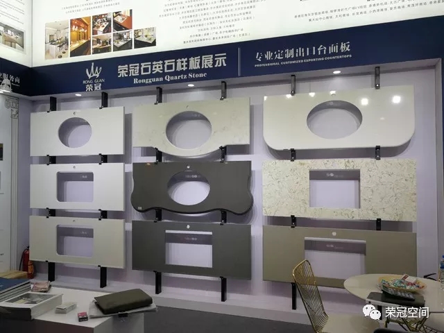 榮冠石材展位以白色作為主背景,搭配藍(lán)黑色邊框,在整個(gè)展區(qū)尤為顯眼。榮冠石材專業(yè)定制出口臺(tái)面板,以匠心為客戶提供優(yōu)質(zhì)的產(chǎn)品和服務(wù)。本次展位除了展示我司最新石材精品和臺(tái)面板加工工藝外,還重點(diǎn)突出了我司人造石應(yīng)用在國(guó)內(nèi)大型商業(yè)工程中的諸多案例,展現(xiàn)出榮冠石材的品牌優(yōu)勢(shì)與技術(shù)實(shí)力。