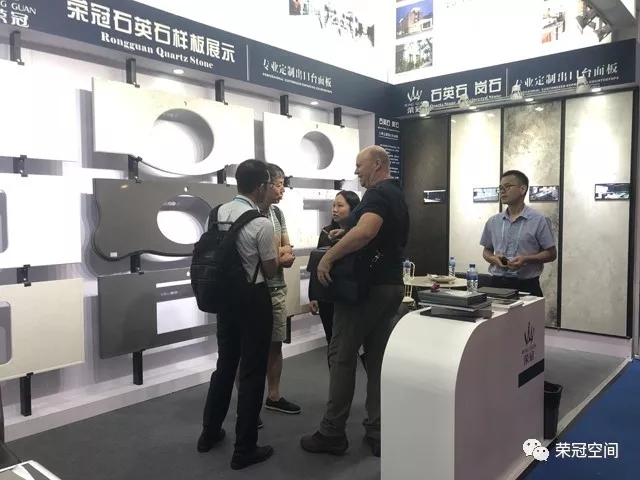 作為人造石工程專業(yè)服務(wù)商,榮冠石材擁有十多年積累的豐富生產(chǎn)加工經(jīng)驗(yàn),并使用國(guó)外引進(jìn)的先進(jìn)生產(chǎn)設(shè)備,確保產(chǎn)品性能穩(wěn)定,工藝品質(zhì)卓越。在本屆廣交會(huì)中,榮冠石材展示出臺(tái)面板的設(shè)計(jì)加工各個(gè)流程,并通過(guò)臺(tái)面板異型切割開(kāi)孔組合等精細(xì)工藝展示,體現(xiàn)出榮冠在精加工方面的雄厚實(shí)力,獲得了觀展客商的一致好評(píng)。