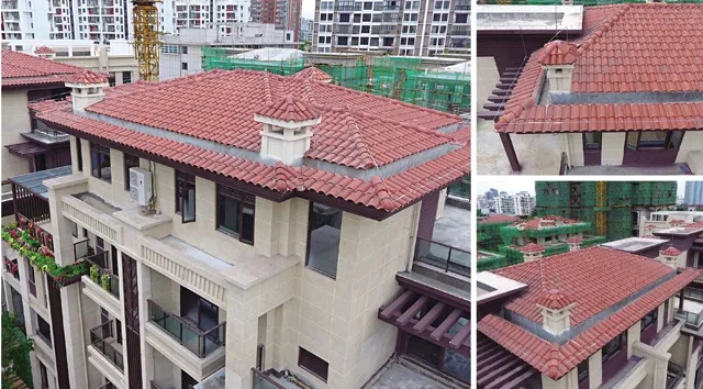 長弘·御墅使用了榮冠羅曼瓦(A006單彩、W082赤紅 各50%)作為屋面裝飾,用量約3000平方米。