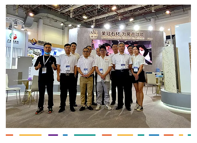 5月18日-21日在廈門國際石材展覽會,我司以「榮冠石材為房產賦能」作為參展主題,攜熱銷石材產品精彩亮相,向參展觀眾展現人造石材的非凡魅力,引得眾多客商紛紛駐足觀看、咨詢。