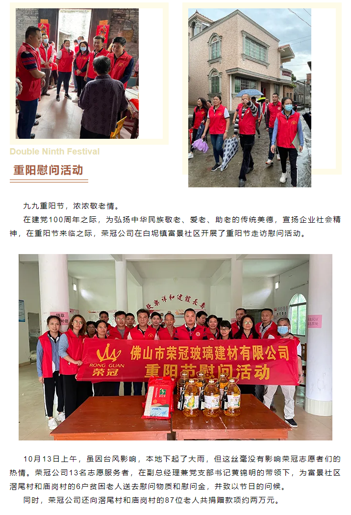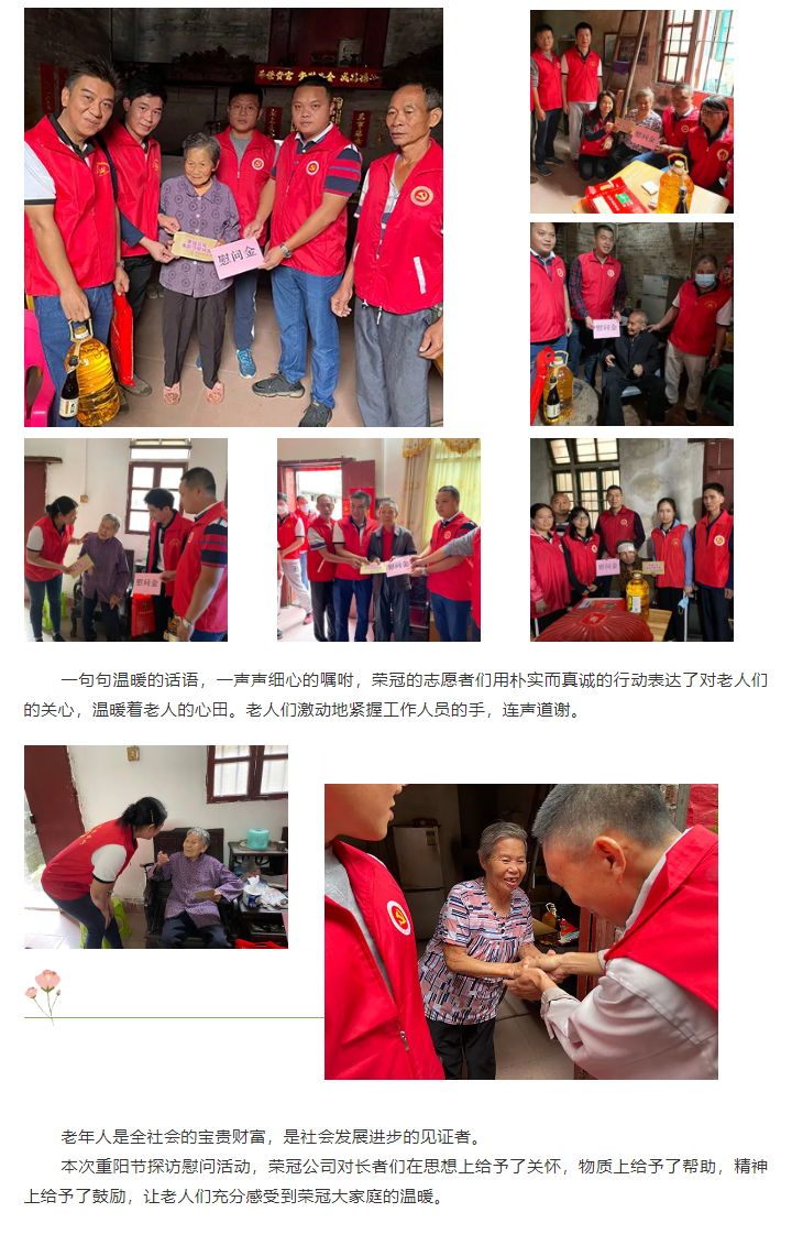 敬老愛老暖人心,榮冠公司開展重陽節慰問活動