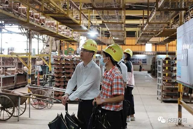 隨后,肖穗祥等領導一行冒雨參觀了榮冠陶瓦的生產車間,并根據實際情況提出了多項寶貴建議。