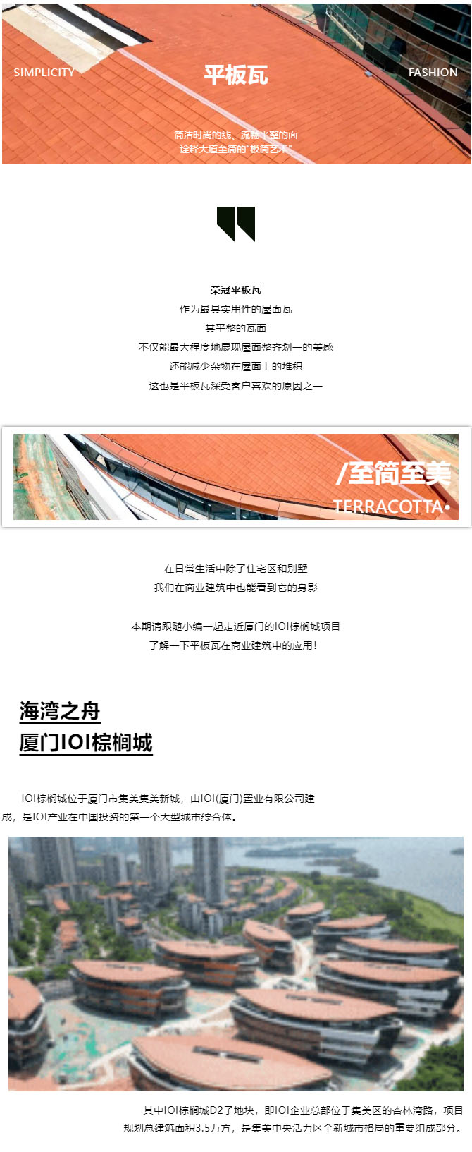 榮冠平板瓦,作為最具實用性的屋面瓦,其平整的瓦面,不僅能最大程度地展現屋面整齊劃一的美感,還能減少雜物在屋面上的堆積,這也是平板瓦深受客戶喜歡的原因之一