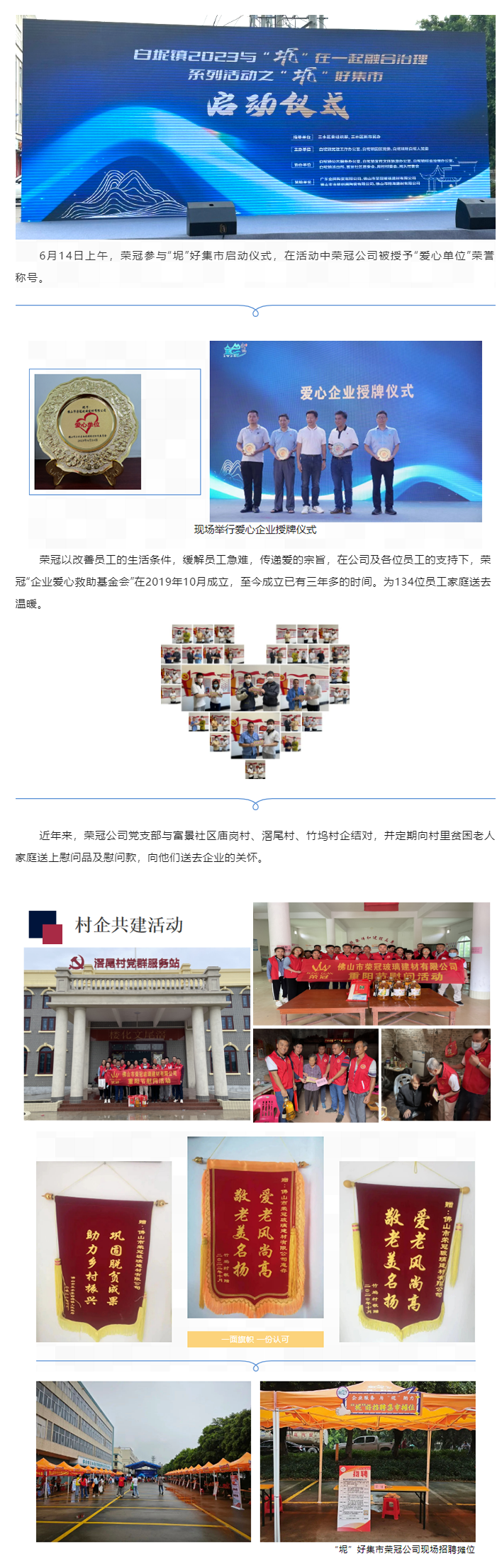 6月14日上午,榮冠參與“坭”好集市啟動儀式,在活動中榮冠公司被授予