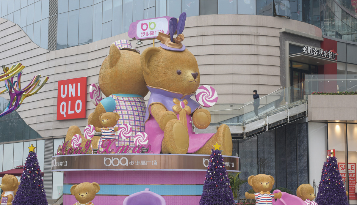整個購物廣場15層,總建筑面積達120000平方米,是日前湖南省單體面積最大商業、娛樂、購物中心。共采用了單冠RB266、 RH362、 RH165、H166、RB153等多種石材用于地面鋪貼,面積達到13萬㎡。