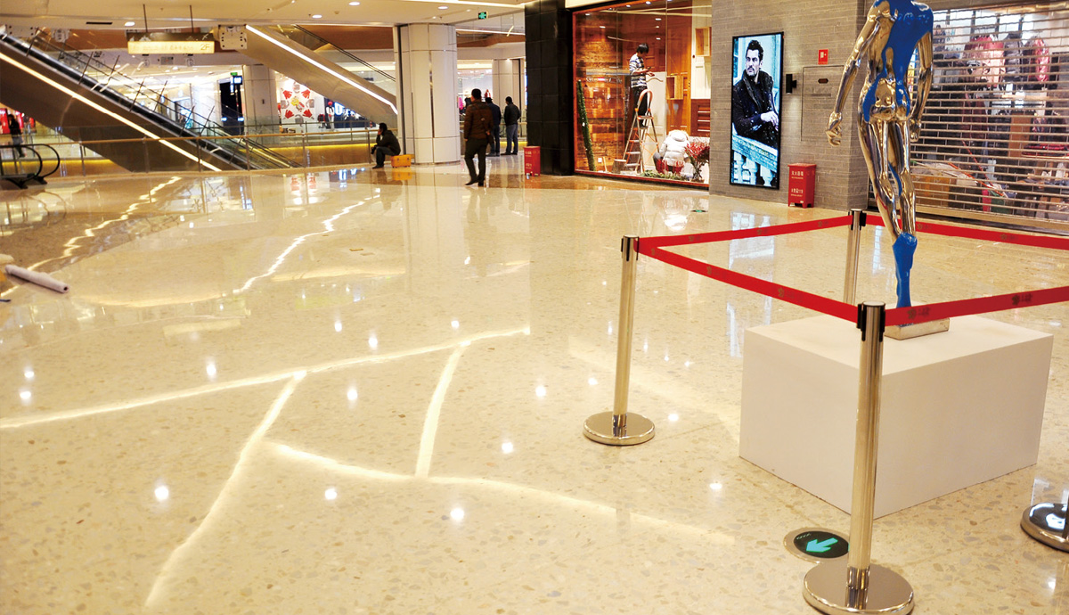 榮冠崗石拼花流暢細膩,質地堅硬,閃耀著驚喜的美感,在燈光的掩映下,顯得豪華大氣。把典雅、奢華表現得淋漓盡致。品質與藝術感并存。自然天成的石材盡帶來新穎、簡約、大方之感,是商場自我定位為中高端的建材以及家居商場的突出寫照。