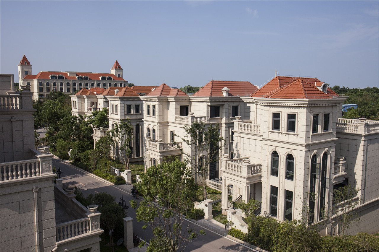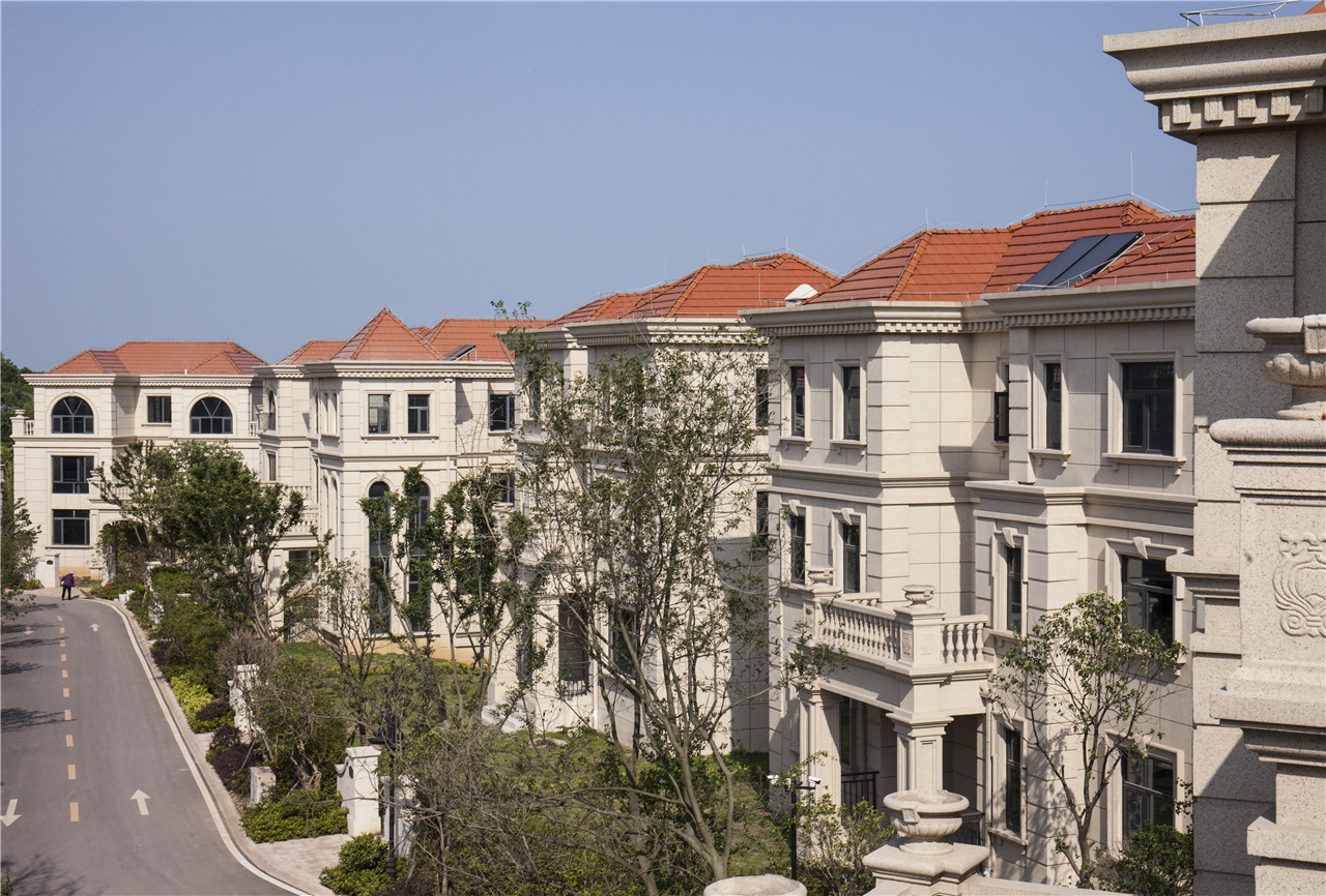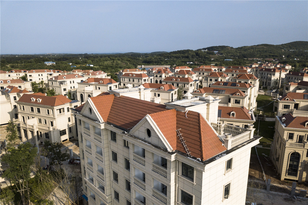 湖北荊門熙龍灣,位于荊門市“零工業(yè)”生態(tài)新城、宜居新城——漳河新區(qū),項目總建筑面積20多萬㎡。項目規(guī)劃200多棟歐式雙拼別墅、水上樂園、婚紗攝影基地、高端酒店會所、水上高爾夫練習(xí)場等,別墅屋面材料采用了榮冠W85-F1平板瓦朱砂紅,鋪貼面積約15000方左右。