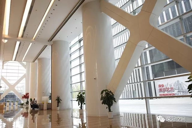 當你進入到建筑內部,你會發現"新銳"、"前衛"、"時尚"是它內部裝飾的代名詞。整個空間聳立著多條白潤如玉的人造石圓柱,溫潤的質地,美觀而高雅,恰似朝日升起前的清爽、明凈,讓你的眼光不自覺的就被它所吸引過去。