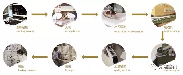 要實現好的裝飾效果,離不開好產品、精加工、設計優化、貨期保障、專業施工指導和專業護理指導等一系列人造石工程服務體系的支撐。而成熟的人造石工程服務體系,這才是榮冠石材的核心競爭力。