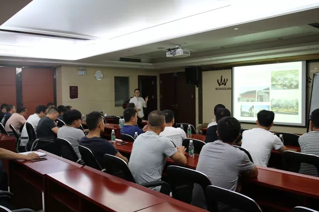 10月9日上午,榮冠公司在總部召開陶瓦銷售內部培訓和交流會 , 目的是為了加強銷售人員關于設計配套、售前售后配套方面的知識 。本次培訓邀請了資深建筑設計師曾工進行授課,講述了中式建筑風格以及我司陶瓦產品如何應用在中式建筑等方面的知識。